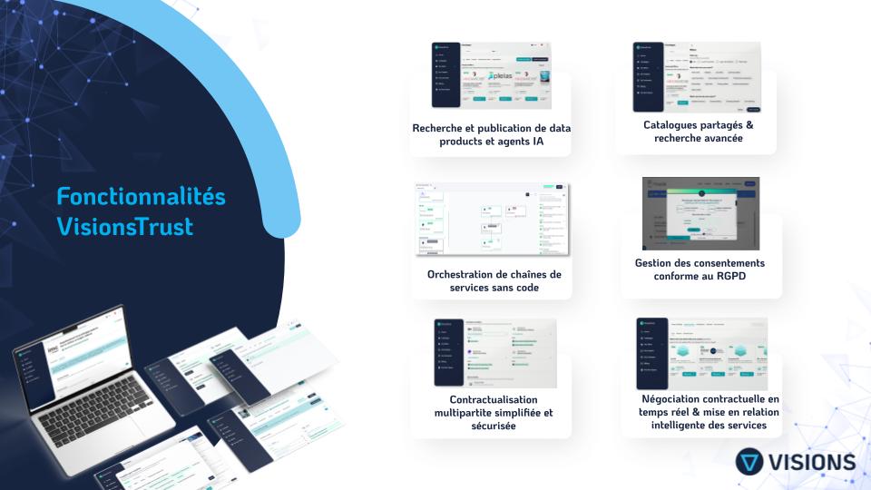 Ainsi, VisionsTrust ne se limite pas à connecter des systèmes. La plateforme permet d’organiser, sécuriser et activer l’usage des données dans des services concrets.
