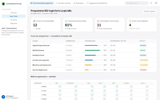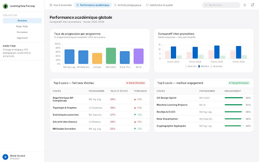 The Learning Data Factory was presented as a solution to leverage multi-source data without complex integrations. Based on a plug-and-play approach, it integrates with systems such as Moodle or Totara via the data space.