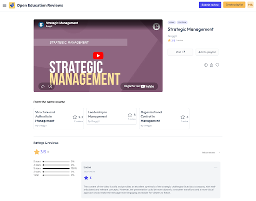 Open Education Reviews acts as the data source. These data are shared via VisionsTrust within a secure and contractual framework. They are then used by Edtake, an AI authoring tool, to generate summaries and help identify the most relevant learning resources.