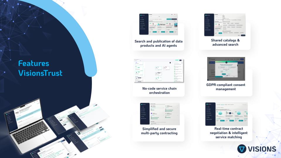 VisionsTrust goes beyond system integration. It enables organisations to structure, secure, and activate data usage within real-world services.